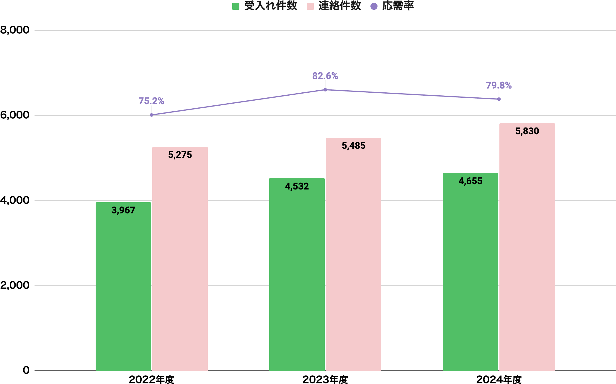 2024年度 | 4,655件 | 5,830件 | 79.8% |