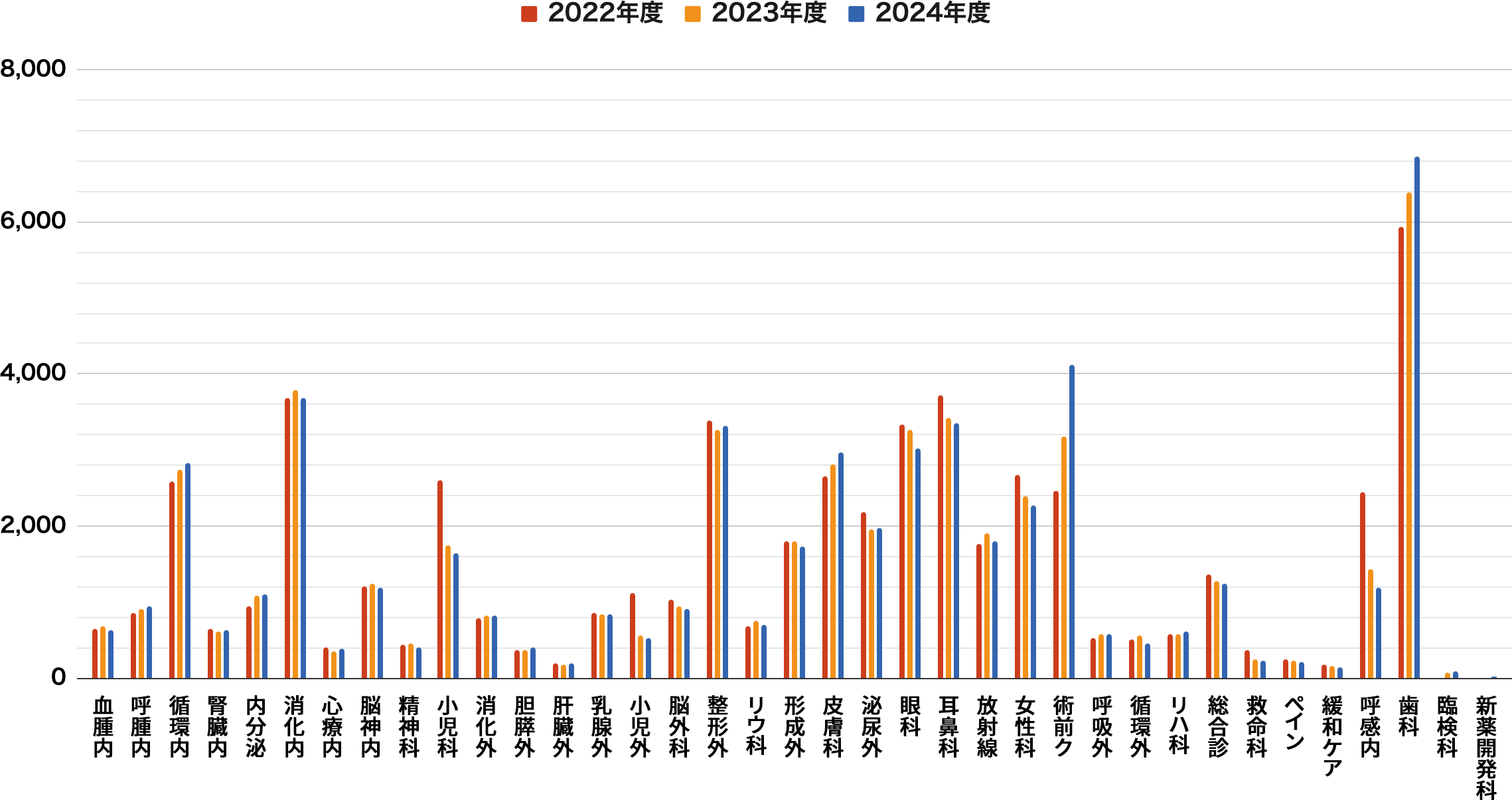 血液腫瘍内科 | 647 | 686 | 635 | 皮膚科 | 2,658 | 2,817 | 2,975 |