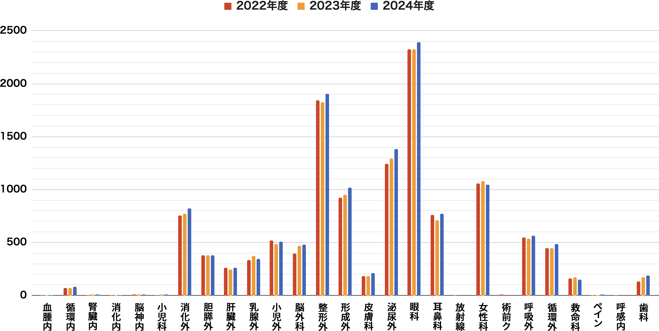 腎臓内科 | 5 | 8 | 11 | 眼科 | 2,327 | 2,325 | 2,394 |