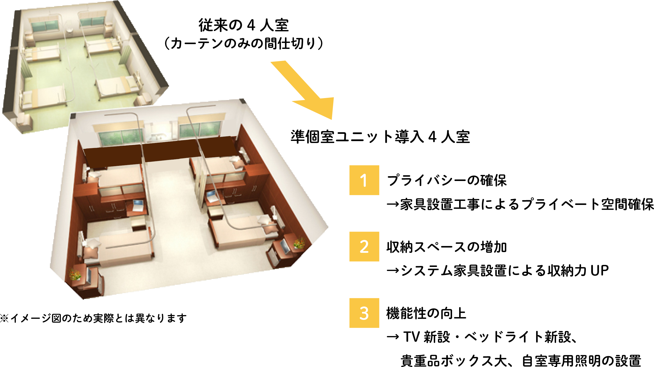 準個室〈4床室〉(トイレあり28室・トイレなし20室)