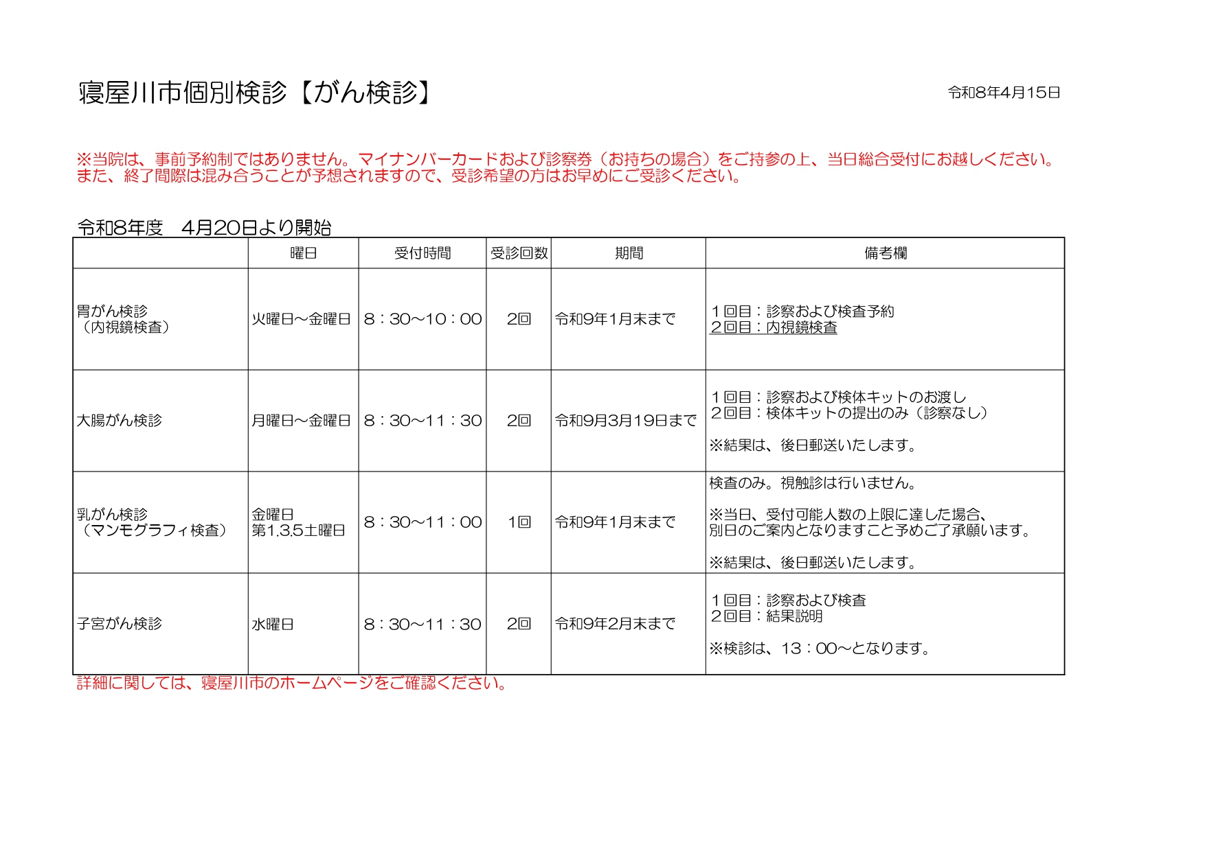 各種ご案内