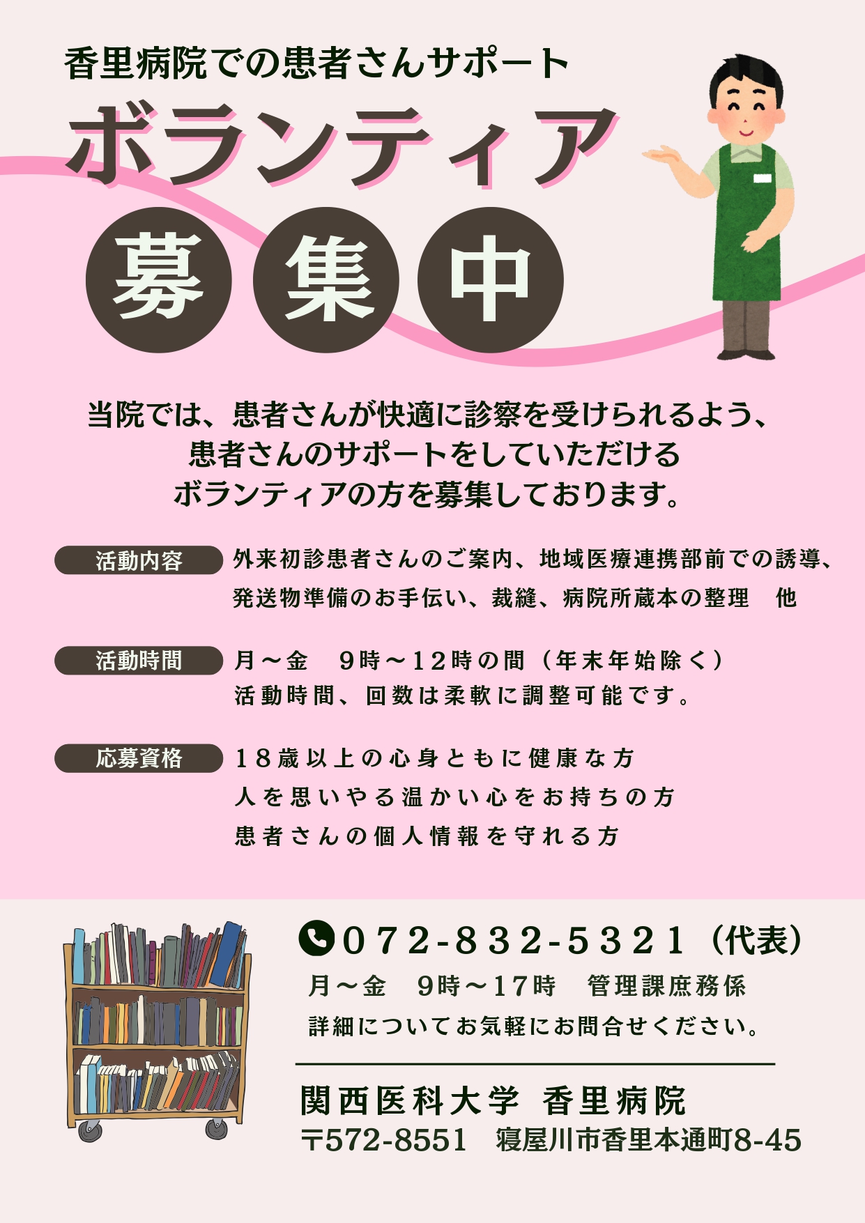 患者さんが安心して治療を受けることができるよう、自発的に無償で活動してくださる方を募集しております。