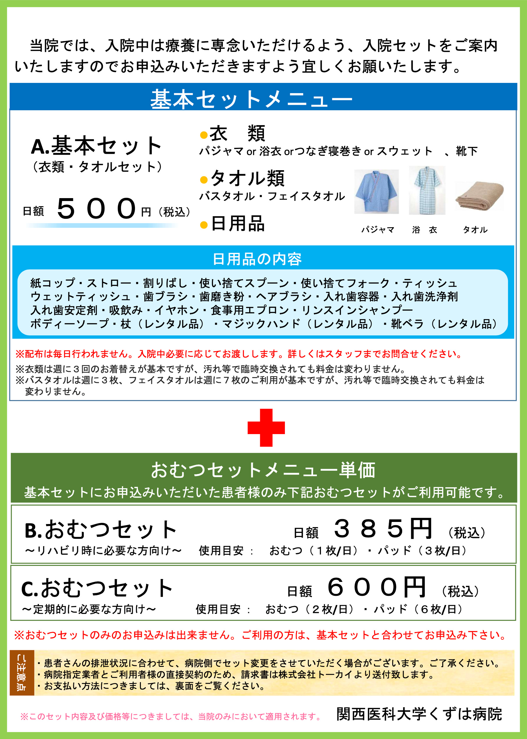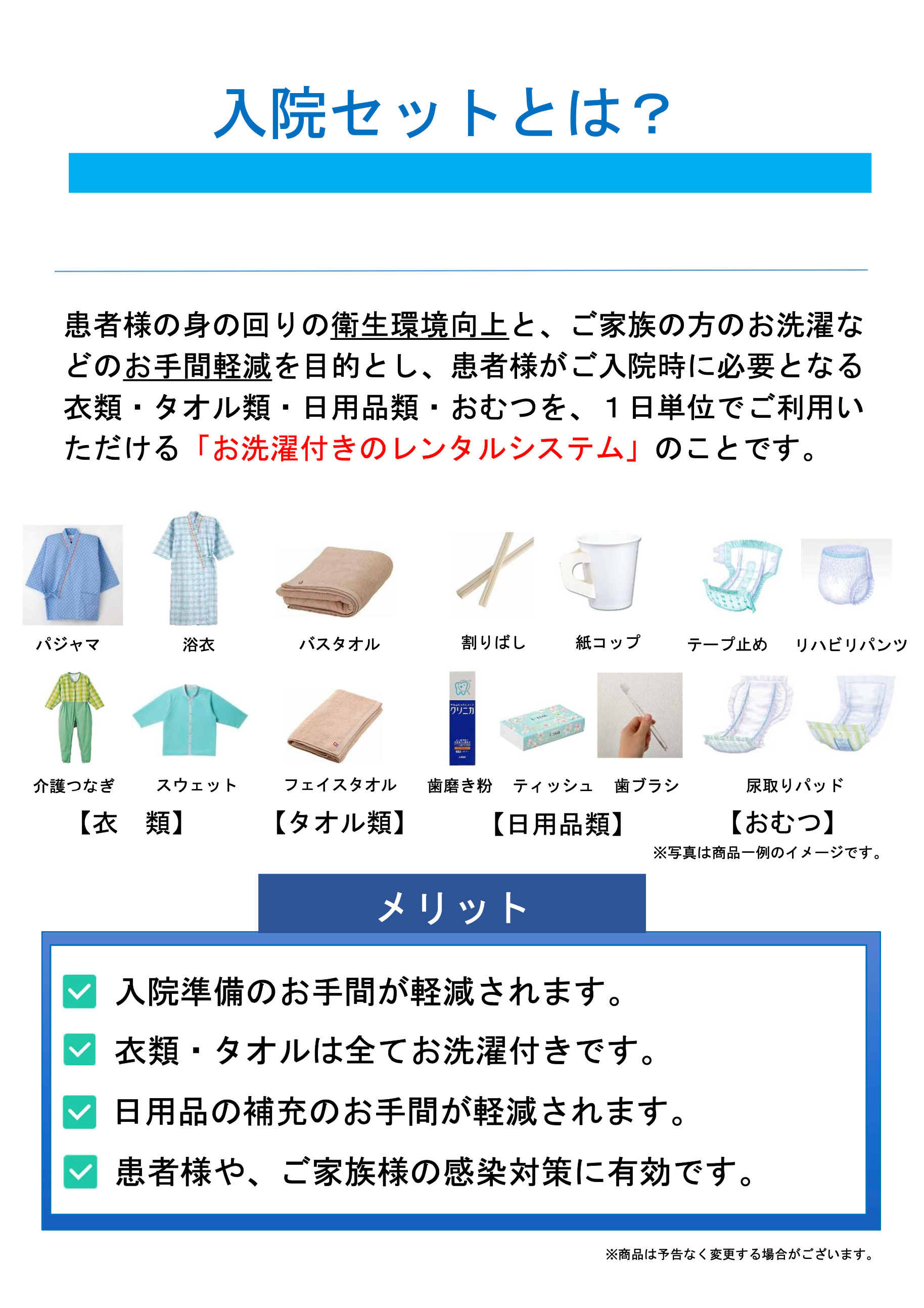 必要な書類や物品、レンタル病衣についてご案内しています。