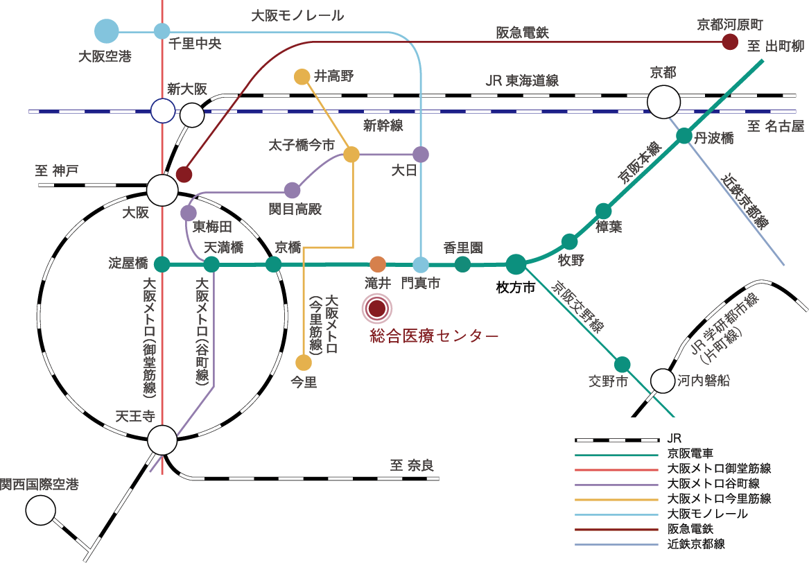 ①関西医大総合医療センター 本館正面玄関前【発】 |