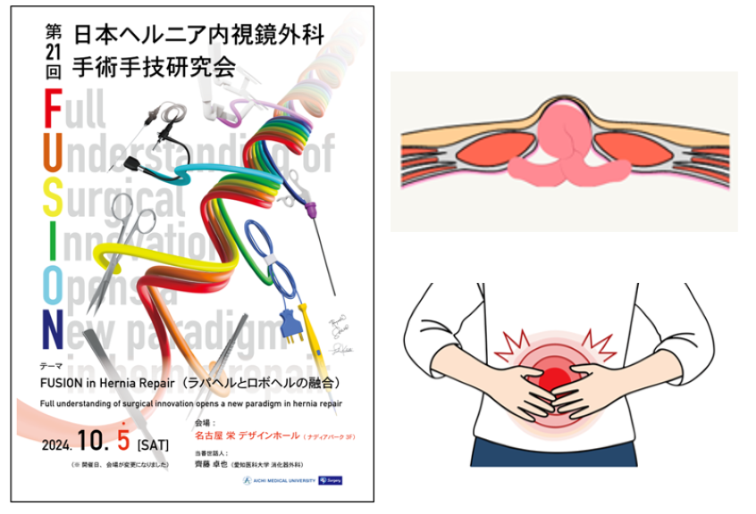 - 腹部ヘルニア全般(鼠径ヘルニア、大腿ヘルニア、閉鎖孔ヘルニア、臍ヘルニア、腹壁瘢痕ヘルニア、傍ストマヘルニア、食道裂孔ヘルニア)