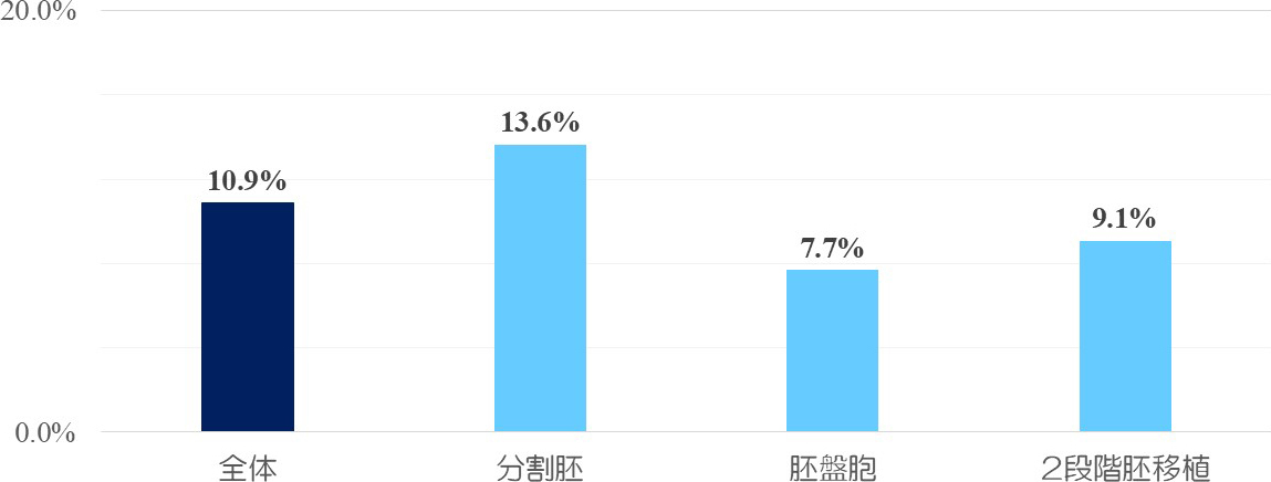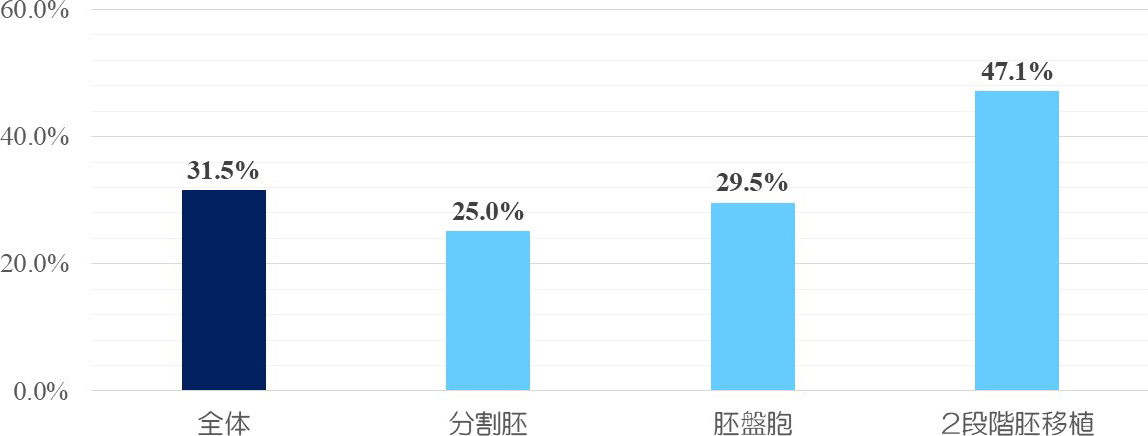 39歳以下の妊娠率(移植胚別)2025.1.1~2025.12.31 凍結融解胚移植