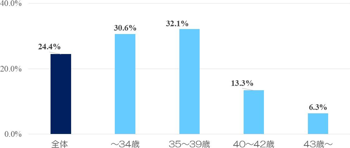胚移植あたりの妊娠率(年齢別)2025.1.1~2025.12.31 凍結融解胚移植